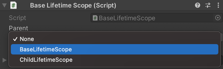 parent = lifetimeScope; // Inject the LifetimeScope to which this class belongs